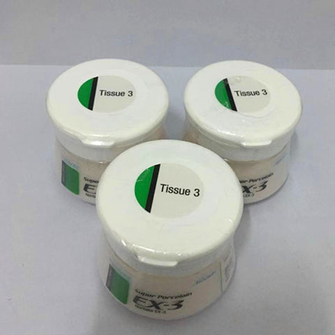 The fabrication procedures for NORITAKE SUPER PORCELAIN EX-3 are remarkably easy. Its outstanding features are made possible because of its very fine particle size. NORITAKE SUPER PORCELAIN EX-3 is superior to other dental porcelains because its coefficient of thermal expansion (CTE) remains stable during repeated bakings. Therefore, when making a long span bridge, each unit may be precisely customized with repeated baking of the entire span with minimal risk of cracking. It is compatible with precious, semi-precious, non-precious and silverfree alloys for metal-ceramic protheses. Its fluorescence is ideal and it is highly resistant to silver- induced greening. This combination of features makes NORITAKE SUPER PORCELAIN EX-3 an ideal choice for porcelain restorations.